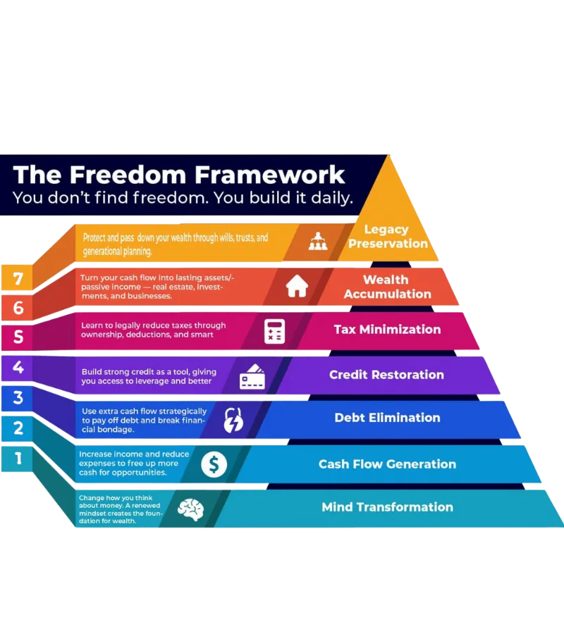 Daily Deep Dives into the Freedom Framework: Unlock each stage of the proven 7-pillar system that has helped thousands break free from financial bondage.